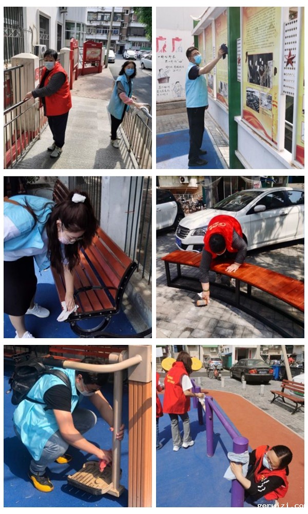 随后,教职工分成两个志愿服务队分别参加了清洁社区健身场所和宣传社区养老服务中心的志愿活动。清洁小分队的志愿者们认真擦拭了健身场所中的健身器械、宣传橱窗和休闲座椅等。宣传小分队的志愿者们深入辖区内粘贴越秀路街道居家养老服务中心宣传海报、发放宣传单、介绍医养互联等特色服务内容。