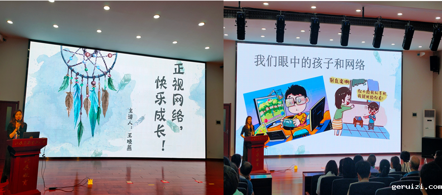 活动邀请心理学硕士、国家二级心理咨询师王晓燕老师,与现场的班主任和家长分享如何让孩子“正视网络,快乐成长”。